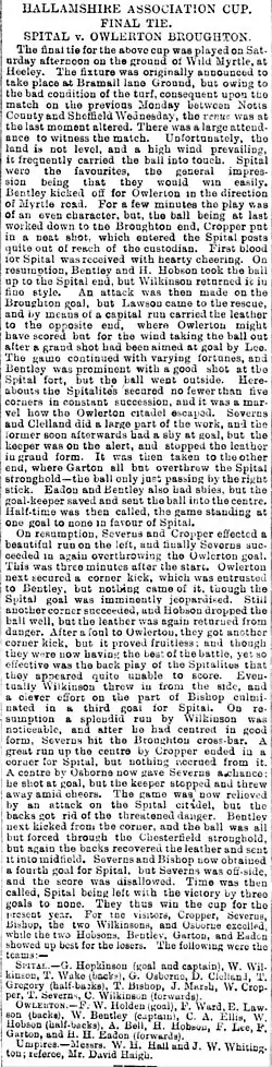 - ^ "Sheffield v Spital". Sheffield Daily Telegraph: 4. 8 December 1884.