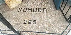 The building at 269 Powell St. was built in 1905 and originally housed the Komura Bros. General Store, an anchor store for Vancouver's Japanese community.[14] In 1942, the family was forced out of the building when the Canadian government remanded Japanese-Canadians to internment camps following the Canadian declaration of war on Japan at the start of World War II.[15][16] The exterior of St. Lawrence retains the original tiling outside the front door, including the word "Komura".[4] The metal gates surrounding the door are also original.[12] The door and exterior walls are painted a deep blue-green, and a large cream-and-black sign with the restaurant's name hangs above the door on the building's second floor.[17][12]