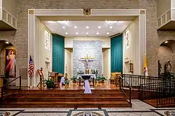 The history of St. Theresa goes back to the 1840s. The only two chapels in the area were in Donaldsonville, Louisiana across the Mississippi River and in St. Gabriel, Louisiana at the St. Gabriel Catholic Church. The settlers had to cross the river or make the long journey on horse or wagon to these churches. It was known that a new church was needed. The new church was built in Cornerview near Gonzales, Louisiana. This church was renamed Sacred Heart at Cornerview.[1] As the town's population grew the railroad line from Baton Rouge to New Orleans expanded, and River Road and the new Airline Highway cut through Gonzales, a declaration was made to transfer the church from Cornerview to Gonzales. The Cornerview church parishioners signed a protest letter to Archbishop James H. Blenk SM of New Orleans. A new church was then built at the same site near the L and R railroad tracks in downtown Gonzales. It was renamed to St. Theresa upon the request of a benefactor. This church was completely built by parishioners and was thought of as "the ugliest church ever." The parishioners wanted a new church as the steeple was about to fall down. A new church was built in the midst of World War II and is the church that stands today. In 1959 a catholic school was built behind the church building.[2][3] The school is under the same name as the church. After its construction in 1959, the building has been added on to and changed with the additions of a library in 1981, a gym in 1992, a science and computer lab in 2002, and expansion of the front office in 2023l.[4] Another campus was built in Prairieville in 2003. It hosts pre-k through 3rd grades while St. Theresa hosts 4th through 8th grades. The current principals are Micah Ballow.