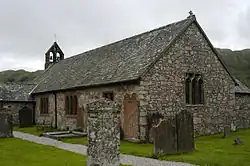 In the churchyard is a gravestone commemorating Thomas Dobson (died 1910), who was master of the Eskdale and Ennerdale Foxhounds for 53 years. Known as the "Huntsman's Grave", the stone is carved with Dobson's huntsman's horn and two projecting heads, one of a fox and one of a hunting dog.[5][8]