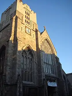 There have been two churches on this site, the first being an octagonal chapel opened in 1782.[1] The chapel and a presbytery were knocked down to make way for a bigger church. The foundation stone of the new church was laid on 30 June 1852. The architect was James Joseph McCarthy and construction of the main church was completed in March 1858, but the original design of the upper portion of the tower and spire was never completed.[2] The church was dedicated to Catherine of Alexandria on 30 June 1858.[1]