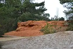 St Catherine's Hill was formed during the Eocene and Pleistocene eras. The hilltop is covered with river terrace gravels, comprising mainly flints and coarse sands, on top of finer Branksome Sands below which is Parkstone Clay and the Poole Formation.[30] A number of these strata can be observed at the old quarry works and are believed to have been deposited during a fluvial or estuarine period, rather than the more commonly associated, marine environment. If so, they are the only known sediments of this age in Southern England to be laid down in this way and indicate an Eocene shoreline between Christchurch and Hengistbury Head. These strata add to the value of the site as a geological SSSI.[30][32]