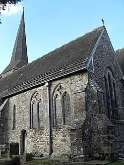 By the late 11th century, a simple single-room stone building existed on the high, open ridge upon which the village developed. A series of medieval expansions doubled its size by the 15th century, and the present building has changed little since then—despite a Victorian restoration overseen by architect R. H. Carpenter. A major addition was the heavily buttressed Perpendicular Gothic west tower, topped with a tall broach spire and containing a peal of ancient bells. The large, steeply terraced churchyard also serves as a public cemetery and has far-reaching views across the Weald. The original dedication to Saint Margaret of Antioch fell out of use for many centuries until a researcher rediscovered it. The church serves a large rural parish which was reduced in size in 1882 when two residents of the hamlet of Highbrook paid for an additional church to be built there. English Heritage has listed it at Grade I for its architectural and historical importance.