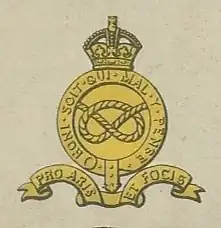 The Imperial Yeomanry were subsumed into the new Territorial Force (TF) under the Haldane Reforms of 1908.[57][58][59] On 1 April 1908 the regiment was redesignated as the Staffordshire Yeomanry (Queen's Own Royal Regiment) (TF) affiliated to Hussars, with the following organisation:[5][8][60][61]