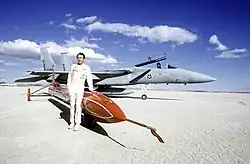 ![]() Barrett (right) with Chuck Yeager | |||||||