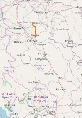 | 13002 | 25.543 km (15.872 mi) | 59.617 km (37.044 mi) | Kovačica (JNA) – Jabučki Rit |