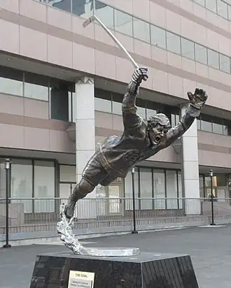 An 800-pound (360 kg)[1] bronze statue of Bobby Orr is installed outside Boston's TD Garden, in the U.S. state of Massachusetts.[2][3] The sculpture was designed by Harry Weber,[4] and unveiled on May 10, 2010.[5]