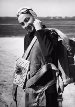 After the Soviet invasion of Poland on 17 September 1939, she evacuated to Romania with the Polish Air Force.[2] Her mother and sister later died in the Warsaw uprising.[8] Until December 1939 she remained in Romania, where she served as a courier, travelling throughout the country and helping to escape and deliver money and documents to interned Polish airmen fleeing to France.[2] She then made her way to France, where she was promoted to second lieutenant and worked in the air staff. After the fall of France in the summer of 1940, she made her way to the United Kingdom on the Polish liner Batory from Saint-Jean-de-Luz to Plymouth. Karpinska was assigned to the Polish Air Force Headquarters in London until later in 1940.[8][2]