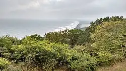 The hill is 97 m (318 ft) high and faces the Baltic Sea.[2] Since the surrounding landscape is relatively flat, it can be seen from a great distance and has traditionally been used as a landmark for seafarers. Many visitors trek up the hill to enjoy the view which is very good in clear weather. The Stenshuvud National Park is traversed by a section of the Skåneleden Trail, between Simrishamn and Kivik. The trail ascends Stenshuvud, offering a diverse range of landscapes and views.[2]