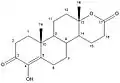 Changing the D-ring cyclopentanone to a six-membered δ-lactone decreased the binding ability of the compounds. Compound 9 combined the D-ring structure of testolactone and the A-ring structure of formestane but had considerably lower inhibition of aromatase than formestane.[14]