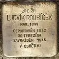 LUDVÍK ROUBÍČEK BORN 1899 DEPORTED 1942 TO THERESIENSTADT MURDERED 1945 IN AUSCHWITZ |