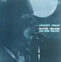 Straight Ahead is a jazz studio album by saxophonist Oliver Nelson. It features acclaimed musicians such as Eric Dolphy on sax, clarinet and flute (his last appearance on a Nelson album following a series of collaborations recorded for Prestige), and Roy Haynes on drums. It was recorded in March 1961 at the celebrated Van Gelder Studio in Englewood Cliffs. All the pieces were first takes; Joe Goldberg recalls: "The session was scheduled for one in the afternoon and I arrived at 3:30, thinking that by then the music would have been rehearsed and the men would be starting to play. What I found was a studio empty of everyone but A&R man Esmond Edwards", the supervisor, "and engineer Rudy Van Gelder, who were packing up to leave and looking very satisfied." Released in 1961 for the Prestige/New Jazz label (as NJ 8255) and remastered in 1989, the album is notable for its long and thoughtful horn duets by Dolphy and Nelson. Don DeMicheal described the album "All in all, a warm, very human record".[5]