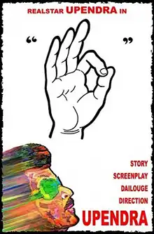 Super (originally known only by the Vitarka Mudrā hand symbol) is a 2010 Indian Kannada-language dystopian political drama film written and directed by Upendra.[1] The film was released on 3 December 2010 in its Kannada version, and on 11 March 2011 in its Telugu version, which had a few scenes reshot with Ali and Sadhu Kokila switching roles.[2] This utopian film has a concept of a contrasting futuristic India set in the year 2030, and the contemporary image of India.[3]