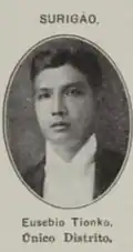 The territory of the former Spanish colonial district of Surigao was first represented in the National Assembly of the First Philippine Republic known as the Malolos Congress.[1] Following the establishment of a provincial government under U.S. civilian rule in 1901, a single-member district encompassing the entire province was created ahead of the elections for the first fully elected Philippine Assembly in 1907.[2][3] The district also elected its representatives to the Commonwealth National Assembly following a shift to unicameral legislature in 1935, and was re-established as a plural member constituency ahead of the 1943 election for the Second Republic National Assembly. It elected a representative to the restored House of Representatives when the country returned to single-member electorates in 1945 and was also represented in the first four meetings under the Third Philippine Republic.[4]