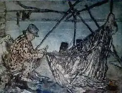 Ross took an etching workshop with Jo Manning in 1967 and acquired a printing press in 1969. She then began producing high quality etchings and, drawing on the rich array of sketches obtained on her various trips, she was able to reflect and structure many of these images more rigorously in the studio. Being the "right person at the right place in a very dramatic time in Canadian history",[7] she was able to capture and document a period of rapid change in many northern communities. In many of these images "the human toll is recorded in the faces of individuals and in the cumulative details of daily existence".[6]