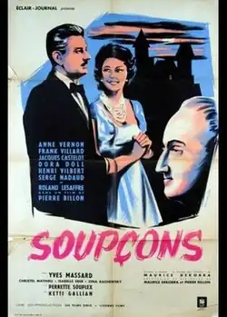 Suspicion (French: Soupçons) is a 1956 French crime drama film directed by Pierre Billon and starring Anne Vernon, Frank Villard and Dora Doll. It is based on the 1950 novel La Pavane des poisons by Maurice Dekobra.[1] The film's sets were designed by the art director Aimé Bazin.