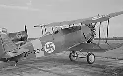 The prototype was bought by the Swedish Air Force on January 9, 1930 for 81,654 Norwegian krone, and given the designation J 5. By February 1930, the Air administration decided to use a Bristol Jupiter engine as the air force standard engine.[1] The designer, Carl Clemens Bücker was forced to modify the two ordered aircraft, by making new engine attachments and make modifications to the fuselage. These aircraft were given the name SA-14 Jaktfalken I (or J 6 in the Swedish Air Force). The order was followed by a new one for 5 aircraft with Jupiter VII engines in 1930, designated SA-14 Jaktfalken II (or J 6A in the Swedish Air Force). During test flights, powerful vibrations were encountered.[1] Both Svenska Aero and CFV tried to solve the problem, without success. The aircraft was still approved by the Swedish Air Force. Bücker and CFV tried to modify the landing gear and the fuselage after the delivery. The aircraft had now a more angular fuselage and the Jupiter VIIF was chosen as the engine. The Swedish Air Force received three Jaktfalken IIs in 1932.