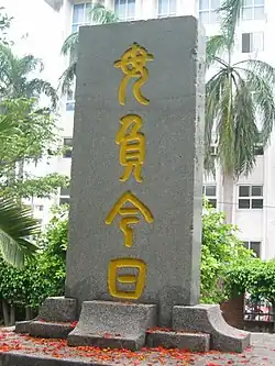 The stele erected in Taichung First Senior High which was inscribed "毋負今日".
