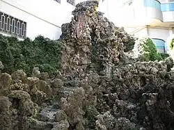 During Japanese rule, when the fortunes of the Wu family began to decline, the garden was confiscated by Tainan Prefecture (臺南廳)[2]. In 1911, the Former Tainan Assembly Hall was constructed along the Garden's southern edge, as well as the then-famous Four Seasons Inn (四春園旅館) on its southeastern side, the Tainan Library (臺南圖書館) (in 1920) on its northwestern corner [3], and Tainan Municipal Swimming Pool (臺南市水浴場) (in 1922) on its northern edge[4]. In 1974, the Four Seasons Inn, Tainan Library, and Tainan Municipal Bathhouse were sold to Far East Department Store, and now is the location of its Park Branch store[4].