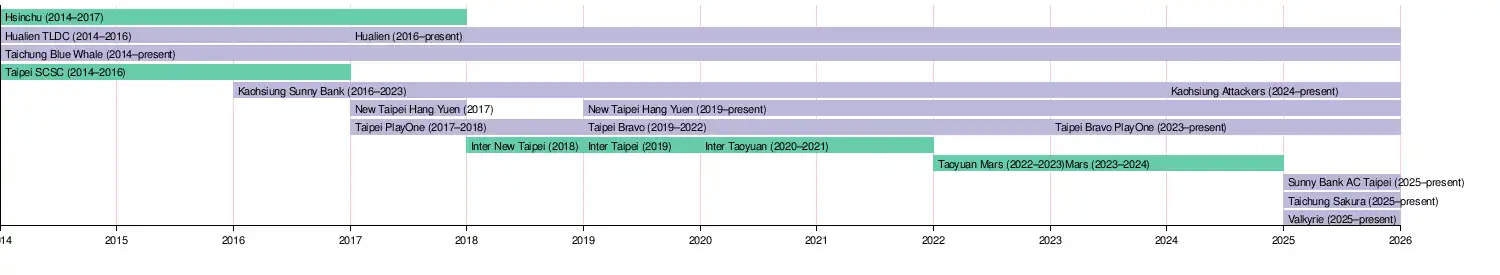| Sunny Bank AC Taipei | Taipei | — | 2025–26 |