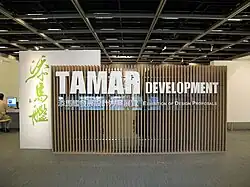 Tamar (/ˈteɪmɑːr/ ⓘ TAY-mar; Chinese: 添馬) is the administrative centre of Hong Kong located in Admiralty. The headquarters of Hong Kong's Legislative Council and Central Government are located in Tamar. Adjacent to the island's financial heart at the Central harbourfront, the word Tamar is often used as a metonymy for the Government of Hong Kong.