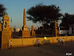 Tanot was attacked again during the Indo-Pakistani War of 1971, but this time the attacking tanks got bogged down in the sand, allowing the Indian Air Force to destroy them.[5][6] After the 1971 war, the Indian Army built a Vijay Stambha (Victory tower) inside the temple compound to commemorate the victory in the Battle of Longewala.[7] A company of 120 infantry only soldiers of Indian Army defeated a Division of 2000 Pakistani soldiers which also had the Pakistani tank squadron.[3]