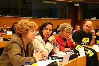 In 2004, she ran successfully for MEP as a candidate of the largest Russian political bloc in Latvia[14] becoming a member of the Greens–European Free Alliance fraction in the European Parliament.[17] In 2005, Ždanoka became one of the founders of the EU Russian-Speakers' Alliance.[18] She also won a MEP seat in 2009.[9]