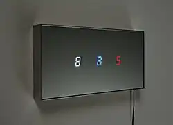 Miyajima made his first LED counter in 1988; this has formed the basis for much of his later work.[6] Typically, a block will display two digits in red or green, and count from 1 to 9. The counters never register zero, because, for Miyajima, the idea of zero is a purely Western concept.[5] He has subsequently linked together different displays so that they can respond to each other; he calls these systems 'regions'.