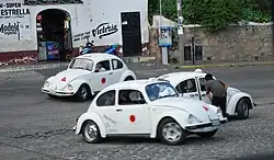 Taxco lies along Mexican Federal Highway 95 and the toll road Mexican Federal Highway 95D. Taxco has two long-distance bus stations: the Terminal Estrella de Oro in the south and the Autobuses Estrella Blanca station in the northeast. There is no airport in Taxco. Transport within Taxco is generally by taxi, or "Kombis"—converted Volkswagen vans that serve as minibuses.[16]