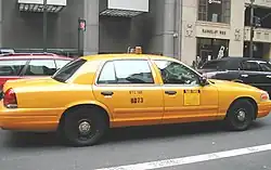 The New York City Taxi and Limousine Commission has enforced strict requirements for the color of medallion taxicabs since the late 1960s.[102] According to the Rules of New York City, "The exterior of the vehicle must be painted taxi yellow (Dupont M6284 or its equivalent), except for trim. Samples of paint color and shade are to be submitted to the commission for approval."[103][104] The specified M6284 paint code is actually a Ford code for school bus yellow.[105]