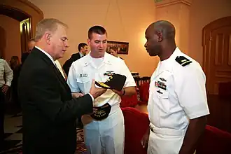 Sailors present Strickland with an honorary commander's cap during Navy Week, 2009.