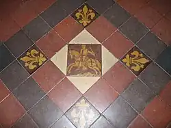The parish church of St. Andrew was entirely rebuilt in 1875 to a design by Frederick Preedy[8] on the site of an older edifice.[2] Consisting of a chancel with a north organ chamber and vestry, nave, north aisle, and a south-west tower serving as a porch, it is built of lias stone with sandstone dressings, and has tiled roofs. On the north wall of the chancel is a repainted stone shield of arms of the 17th century with the six quarterings of the Woodchurch-Clarke family, impaling the quarterly coat of De la Hay, Winterbourne, Sheldon, and Ruding. In the organ chamber is a 17th-century oak chest with panelled sides, a carved top-rail, and a panelled lid.