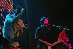 The Amsterdams at the official release of their second album, Electromagnetica, in Kulturhaus Club, Bucharest. Left: Ovidiu Bejan. Right: Andrei Haţegan | |