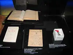 - ^ According to French legal documents and his birth certificate, no hyphen is used in his name, thus written de Saint Exupéry, not Saint-Exupéry. The Armorial de l'ANF, which lists the French nobility, mentions the Saint Exupéry (de) family without a hyphen. However all his books were published under his name with a hyphen, which technically makes it a pseudonym. Memorial plaques, the 50-franc banknote, the bracelet he was wearing at the time of his death also use the hyphen (Saint-Exupéry). It was after his arrival in the United States in 1941 that the author adopted the hyphen within his surname, as he was annoyed with Americans addressing him as "Mr. Exupéry".