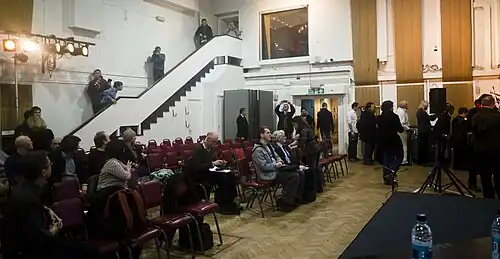 The Beatles at Abbey Road is a multimedia presentation hosted by Abbey Road Studios in London that focused on the recording career of the English rock band the Beatles.[1] It took place from 18 July to 11 September 1983, while part of the studios were undergoing renovation. The program included a guided tour of Abbey Road's Studio 2, where the Beatles recorded most of their music for EMI in the 1960s; a two-part video presentation narrated by disc jockey Roger Scott,[2] with interviews and rare archival footage; and previously unheard outtakes from the band's recording sessions.[3] The event was hosted by studio manager Ken Townsend and the shows took place three times a day.[4] Its staging reflected the elevation of Abbey Road (formerly EMI Studios) to the level of an English cultural location, as well as the enduring popularity of the Beatles, more than ten years after their break-up.[5] The Beatles at Abbey Road was a commercial success, with 22,000 tickets sold.[5]