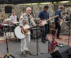 The Black Sorrows are an Australian blues rock band formed in 1983 by mainstay vocalist Joe Camilleri. The band is most well known for their songs "Chained to the Wheel", "Harley + Rose" and "Never Let Me Go", released in the late '80s and early '90s. Faithful Satellite, released in September 2016, is the band's 18th studio album.[1] Citizen John was released in March 2019.[2]