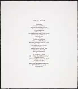 - ^ "Title Page from The Blue Guitar - McNay Art Museum". McNay Art Museum. Archived from the original on 26 Feb 2023.