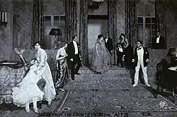 The Broadway premiere for The Country Cousin came on September 3, 1917, at the Gaiety Theatre.[12] Theodore Roosevelt was present in a box as a guest of Julian Street,[13] and was forced to make a speech in response to a "tremendous ovation". He called The Country Cousin "a first-class American play", a sentiment with which the Brooklyn Daily Eagle critic agreed. They liked the acting of Carlisle, Eugene O'Brien, and Donald Gallaher, but thought Arthur Forrest as the conniving father was "hopelessly out of the picture".[14]