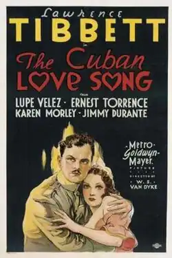 The Cuban Love Song is a 1931 American pre-Code musical film directed by W.S. Van Dyke and written by C. Gardner Sullivan, Bess Meredyth, John Lynch, John Colton, Gilbert Emery, Robert E. Hopkins and Paul Hervey Fox. The film stars Lawrence Tibbett, Lupe Vélez, Ernest Torrence, Jimmy Durante, Karen Morley and Louise Fazenda. The film was released on December 5, 1931 by Metro-Goldwyn-Mayer.[1][2]