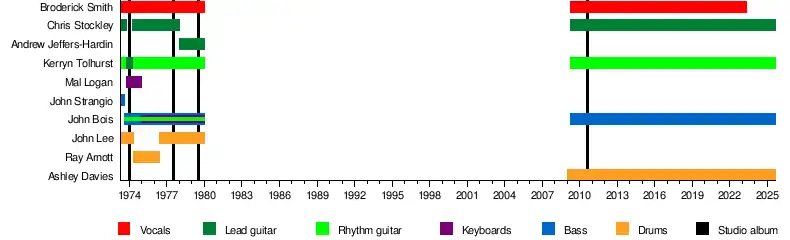 - John Bois – bass, rhythm guitar, keyboards, backing and occasional lead vocals (1973–1979, 2009–present)