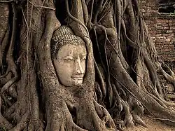 The cover artwork is inspired by a Thailand's sculpture called "Budda Head in Tree".[2]