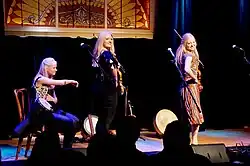 The Gothard Sisters are three American sisters from Edmonds, Washington,[3] who perform Celtic music and choreographed accompanying Irish dance.[4] They play nationwide at county and state fairs, as well as festivals, and at other venues.[5] Greta, Willow, and Solana Gothard, are violinists, singers, and championship dancers,[6] having added guitar, bodhrán, mandolin, and the pennywhistle to their repertoire.[6][7] The trio has released several albums.[7]