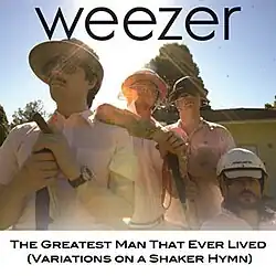 "The Greatest Man That Ever Lived (Variations on a Shaker Hymn)" is a song released as an iTunes single from American alternative rock band Weezer's sixth album, Weezer (2008). "The Greatest Man That Ever Lived (Variations on a Shaker Hymn)" was released to radio on December 9, 2008.[1] The song bears a resemblance to the Shaker song "Simple Gifts" hence the "(Variations on a Shaker Hymn)" in the title. According to lead vocalist and writer Rivers Cuomo, "The Greatest Man" has 11 different themes, including rapping and imitations of other bands such as Nirvana and Aerosmith (both of whom also recorded for Weezer's then-label Geffen Records at one point).
