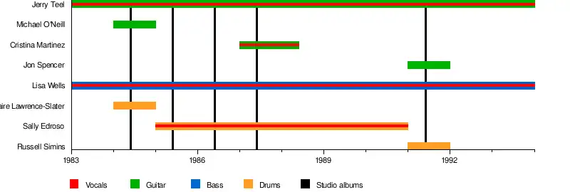 | Past members | Sally Edroso Cristina Martinez Michael O'Neill Russell Simins Claire Lawrence-Slater Jon Spencer Jerry Teel Lisa Wells |