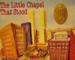 The Little Chapel That Stood is a 2003 children's picture book with verses by A. B. Curtiss and pictures by Mirto Golino.[1] It tells the story of the September 11 attacks by focusing on St. Paul's Chapel, a historic chapel which is located less than 100 yards (91 m) from the destroyed Twin Towers; the chapel survived intact and became a haven for rescue workers in the days after the attacks.[2][3][4] The book's cover features a watercolor painting by Mirto Golino that depicts the chapel surrounded by high rises in Manhattan in 2001, including the North and South Towers of the World Trade Center. The title is a nod to the children's picture-book classic The Little Engine that Could by Watty Piper.[5]