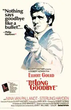 The Long Goodbye is a 1973 American satirical neo-noir film directed by Robert Altman, adapted by Leigh Brackett from Raymond Chandler's 1953 novel of the same name. The film stars Elliott Gould as Philip Marlowe and features Sterling Hayden, Nina Van Pallandt, Jim Bouton, Mark Rydell, and an early, uncredited appearance by Arnold Schwarzenegger.