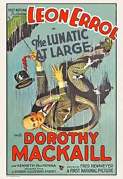 The Lunatic at Large is a 1927 American comedy film directed by Fred C. Newmeyer and starring Leon Errol, Dorothy Mackaill and Warren Cook (his final role). Written by Ralph Spence, it is based on the 1899 novel The Lunatic at Large and its sequels The Lunatic at Large Again (1922), The Lunatic Still at Large (1923), and The Lunatic In Charge (1926) by British writer J. Storer Clouston, which had previously inspired a 1921 film of the same title.[1] The film shifted the setting from the original's London to New York. The film was released on January 2, 1927, by First National Pictures.[2][3][4]