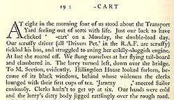 For example, Chapter 19: 'SHIT-CART' was published under the clipped and apparently obscure title ' -CART' (see illustration). However any doubt as to the missing word is soon resolved as the chapter begins: