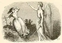 After her adoptive mother becomes ill and passes away, Karen doesn't attend her funeral, choosing to go to a dance instead. Once again, the red shoes take control; this time, she is unable to stop dancing. An angel appears to her, bearing a sword, and condemns her to dance even after she dies, as a warning to vain children everywhere. Karen begs for mercy, but the red shoes take her away before she hears the angel's reply.