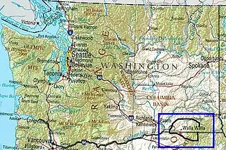 Rough location of The Rocks District (red) within Walla Walla AVA (black) | |